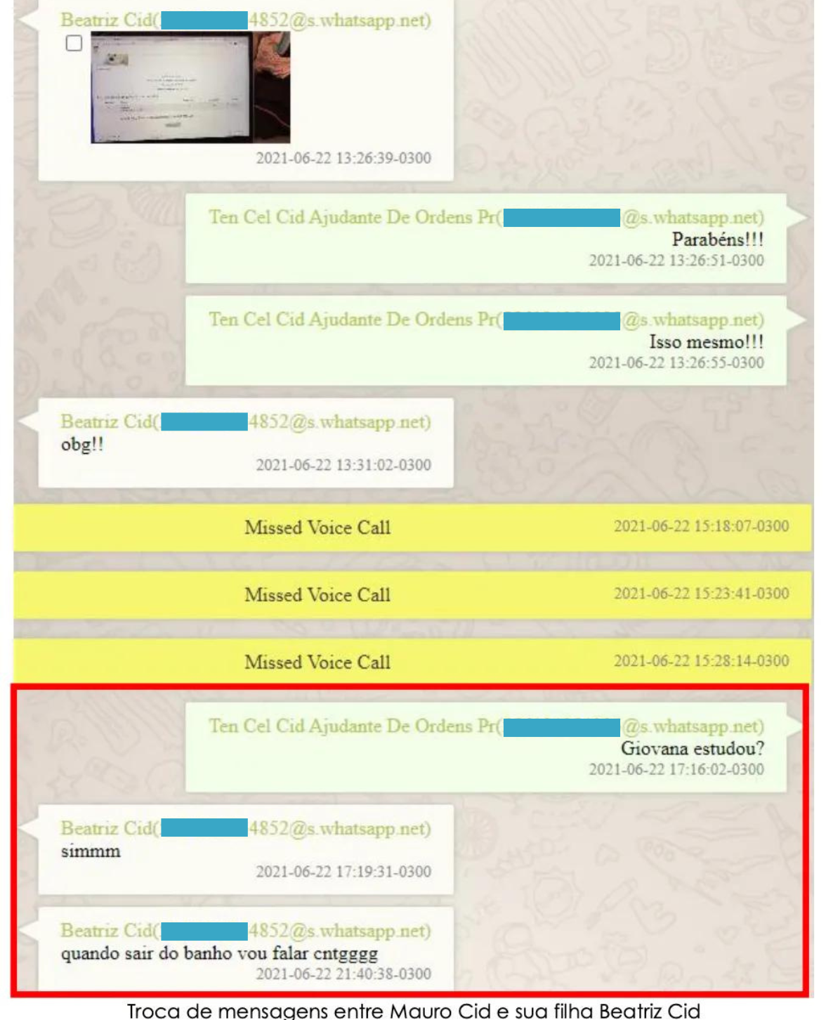 A corporação não notou, no entanto, que o endereço de Marcelo está ligado a um número de celular que aparece mais adiante na investigação, o de Beatriz Cid, filha de Mauro Cid.