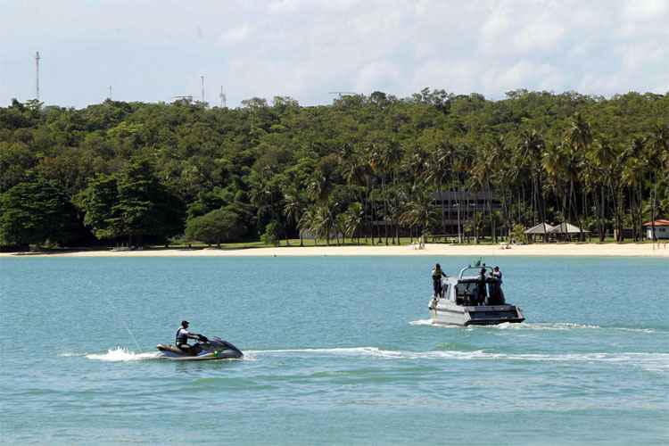 A casa fica num terreno escondido pelo que restou de Mata Atlântica. A Marinha colocou navios para evitar que embarcações se aproximem. A área cercada é impenetrável.