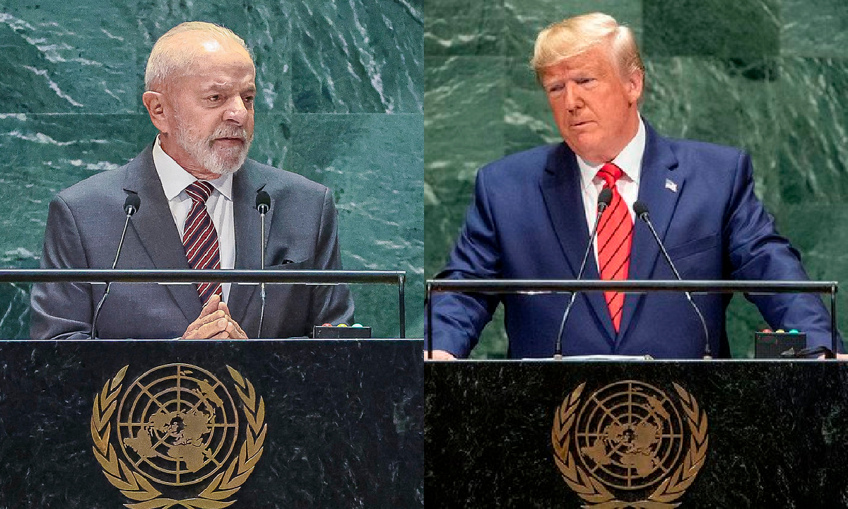 Lula, presidente do Brasil, e Trump, dos EUA, em discurso na ONU. Foto: reprodução