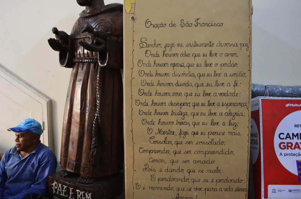 Ronaldo, que meses atrás pesava 40 quilos e agora pesa 74, frequenta o SEFRAS (Serviço Franciscano de Solidariedade), assim como outras 400 pessoas por dia. A instituição é apoiada pela prefeitura e pela Igreja Católica. Ali, pode almoçar, lanchar, tomar banho e receber apoio psicológico.