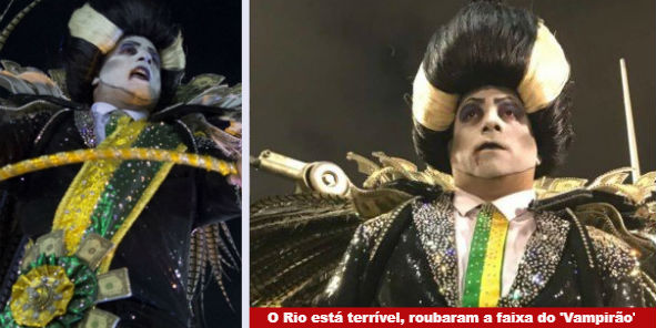 O “Vampirão”, principal destaque do último carro alegórico da escola Paraíso do Tuiuti – vice-campeã e grande novidade deste Carnaval – , desfilou esta madrugada sem a faixa que servia de legenda à sua identidade.