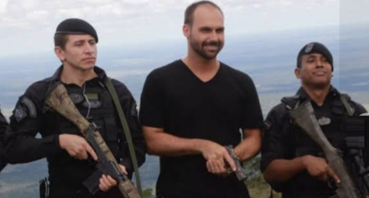 Ele estaria ao lado de Guaidó para oferecer, em nome do pai e dos militares brasileiros, a retaguarda do Brasil aos golpistas da Venezuela.