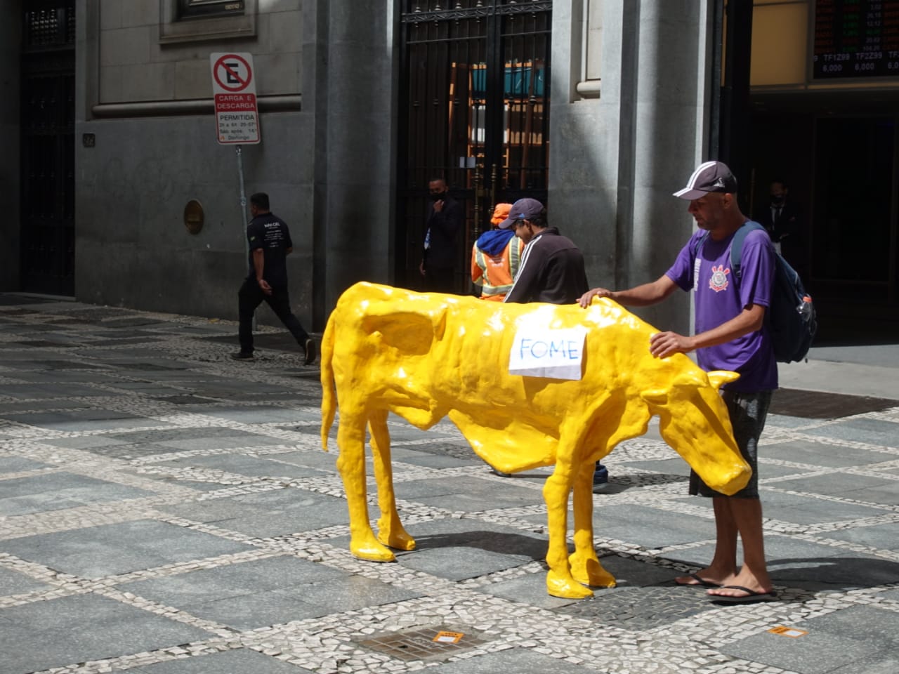 Márcia contou que a intervenção urbana chamada ‘Vacas Magras’ está em curso desde 2011. A escultura exposta em frente ao prédio da B3 faz parte de um grupo de 10 unidades que foram exibidas durante cinco anos nas ruas de Fortaleza.