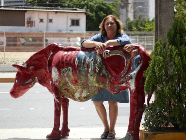 A ideia surgiu quando ela foi visitar a mãe, que na época morava no sertão nordestino. “Todo o meu trabalho é relacionado a questões sociais e a vaca tinha o objetivo de denunciar as secas no Nordeste. Nesse tempo que passei com minha mãe, acompanhei de perto a evolução da estiagem. A cada ano esta situação se agravava e eu percebi que precisava fazer alguma coisa”, relatou a pintora e escultora.