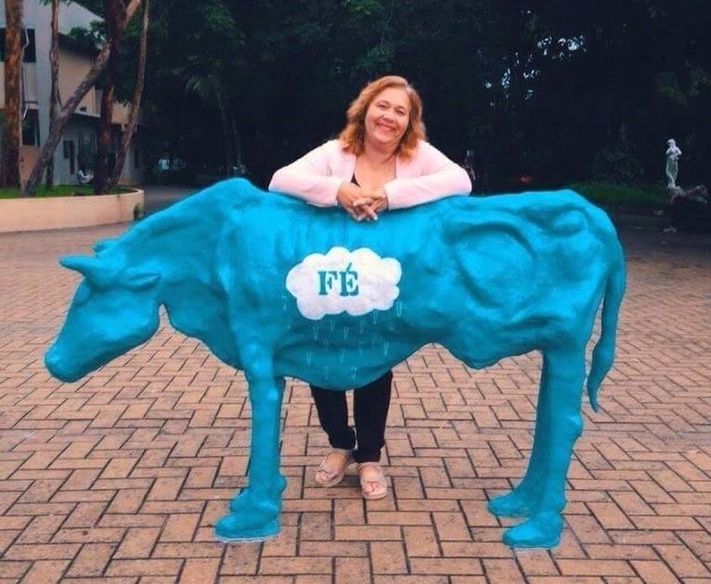 A ideia surgiu quando ela foi visitar a mãe, que na época morava no sertão nordestino. “Todo o meu trabalho é relacionado a questões sociais e a vaca tinha o objetivo de denunciar as secas no Nordeste. Nesse tempo que passei com minha mãe, acompanhei de perto a evolução da estiagem. A cada ano esta situação se agravava e eu percebi que precisava fazer alguma coisa”, relatou a pintora e escultora.