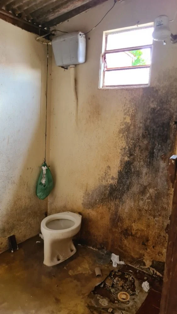 Os 15 trabalhadores dividiam o único banheiro do alojamento. No campo, as necessidades eram feitas entre os pés de laranja. (Foto: Divulgação/GEFM)