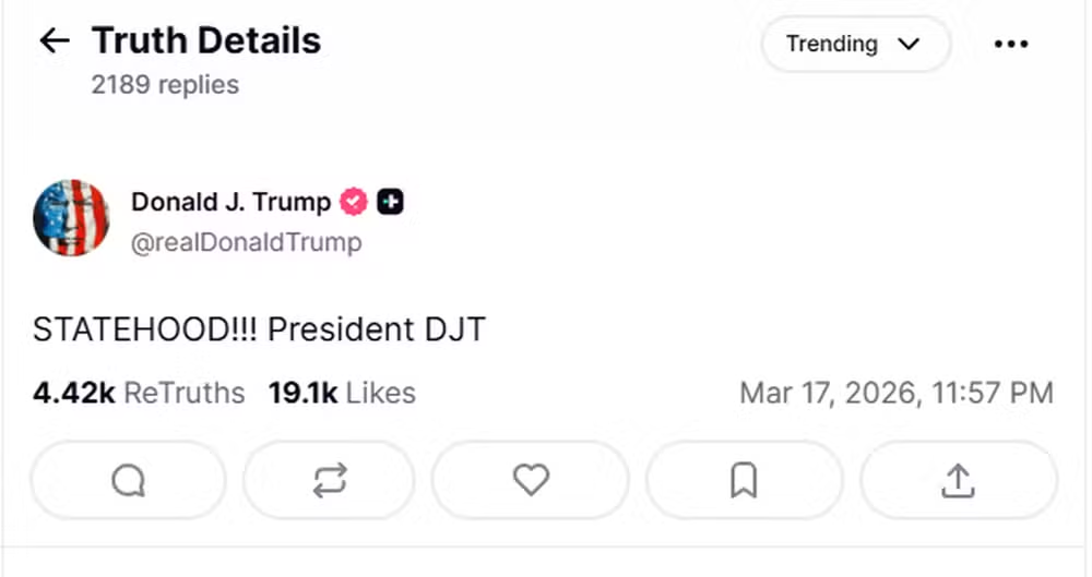 A primeira menção foi feita após a vitória da Venezuela sobre a Itália nas semifinais. “Uau! A Venezuela derrotou a Itália hoje à noite por 4 a 2 na semifinal do WBC. Eles estão parecendo muito fortes. Coisas boas estão acontecendo com a Venezuela ultimamente! Fico me perguntando do que se trata essa magia. Estado nº 51, alguém?”, escreveu. Após o título, Trump voltou à rede Truth Social e publicou apenas: “status de estado”.