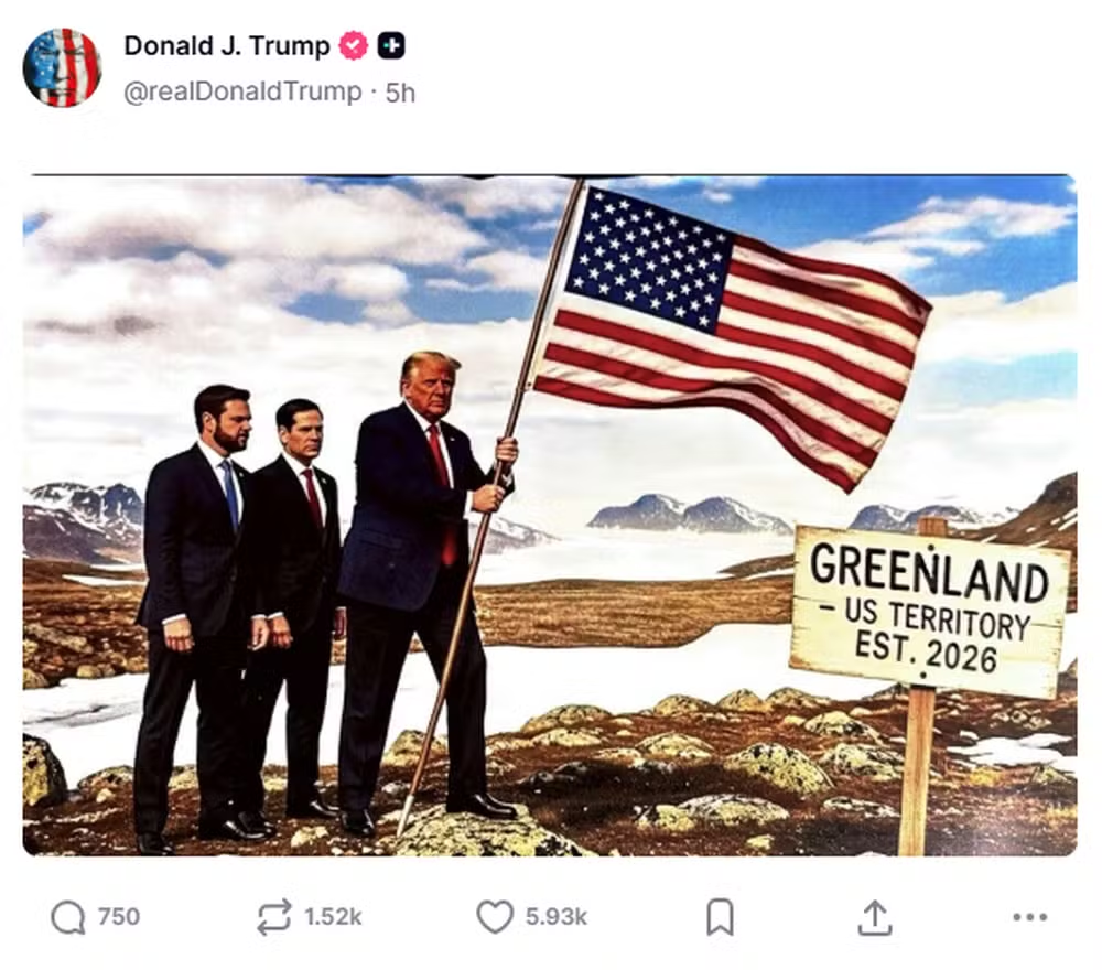 “Os Estados Unidos precisam da Groenlândia para fins de segurança nacional. Ela é vital para o Domo de Ouro que estamos construindo. A Otan deveria liderar o processo para que a conquistemos. Se não o fizermos, a Rússia ou a China o farão, e isso não vai acontecer!”, afirmou.