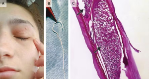 Uma mulher de 26 anos, na Romênia, teve um verme vivo de 11 centímetros de comprimento removido cirurgicamente de sua pálpebra esquerda. O caso...