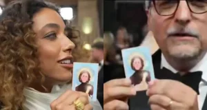 Apelidado de “Santa Nanda da Sorte”, o santinho com a imagem da atriz Fernanda Torres usado durante o Globo de Ouro, na noite deste...
