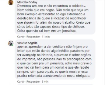 Se tiver sido apagado, pode ser visto nas imagens abaixo. O jornalista do Estadão afirmou que não haveria crédito a ser dado, porque ele trazia novas informações (muito embora não constassem no lide, a principal parte de sua reportagem), como o fato de o soldado vítima de Pazuello ser negro, e também uma entrevista exclusiva com o ex-militar.