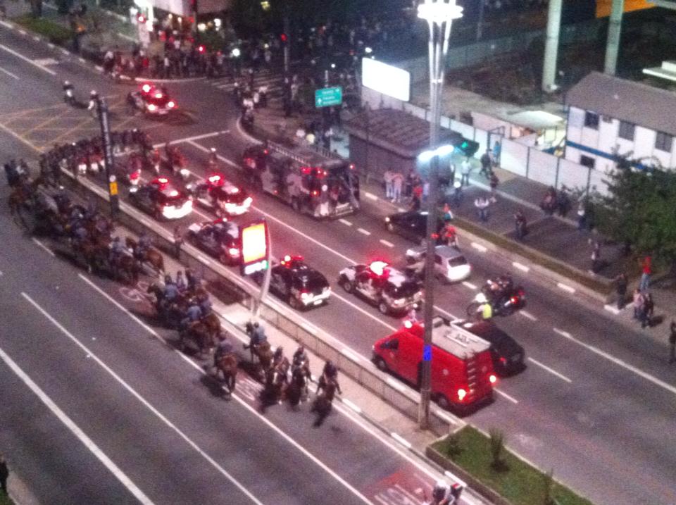 O jornalista Mario Silva relatou ao DCM que às 22hs ainda havia manifestantes sendo perseguidos pela PM próximos à Av. Brigadeiro Luis Antônio, travessa da Av. Paulista.