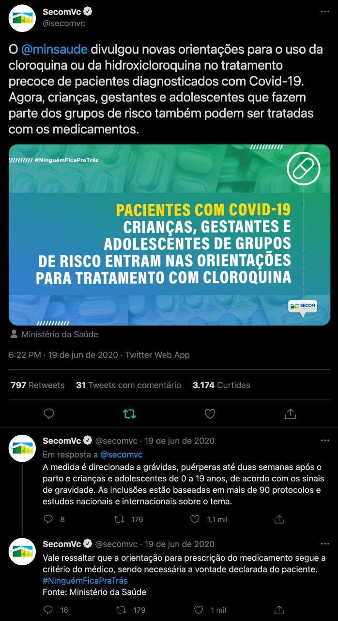 Em junho de 2020, divulgou “orientações” para o uso do “tratamento precoce”.