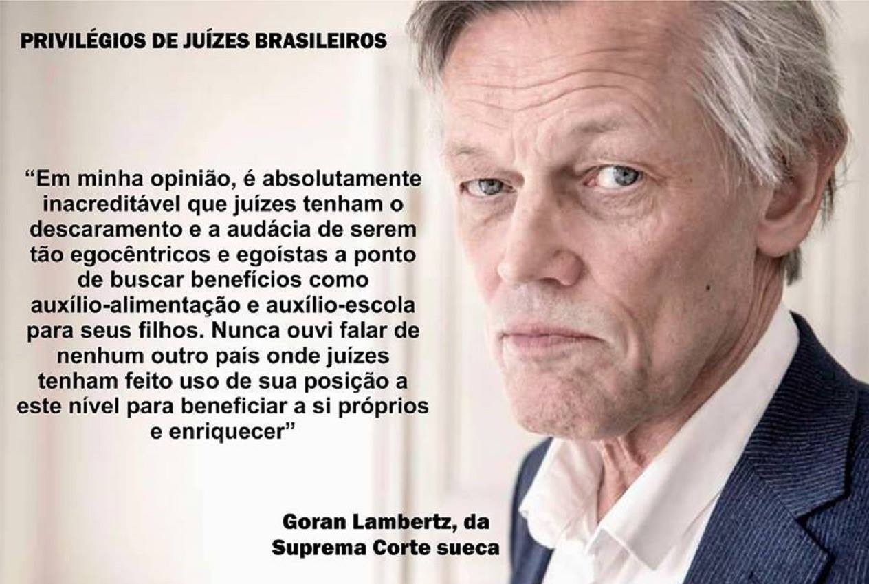 Os juízes suecos não têm mamata nenhuma. Pagam suas próprias casas e seus pratos de comida, como todo mundo. Abastecem seus carros particulares com seu dinheiro. Recebem seus salários e ponto.