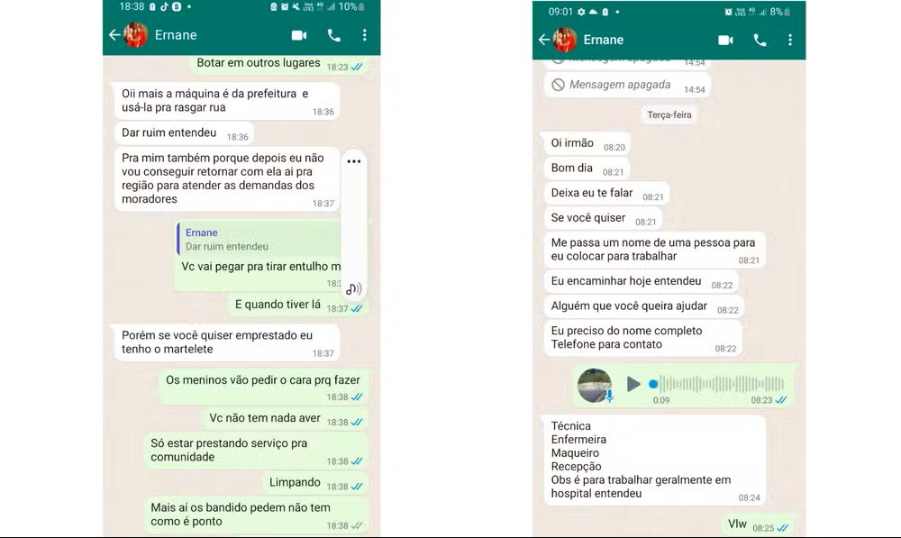 Em conversas obtidas pelo ‘O GLOBO’ mostram que Aleixo negociou o envio de maquinário, supostamente da prefeitura, para “rasgar” ruas onde seriam instaladas barricadas. As mensagens eram trocadas com Marlon Henrique da Silva, o Pagodeiro, apontado como braço direito de Genaro, chefe do TCP na região.