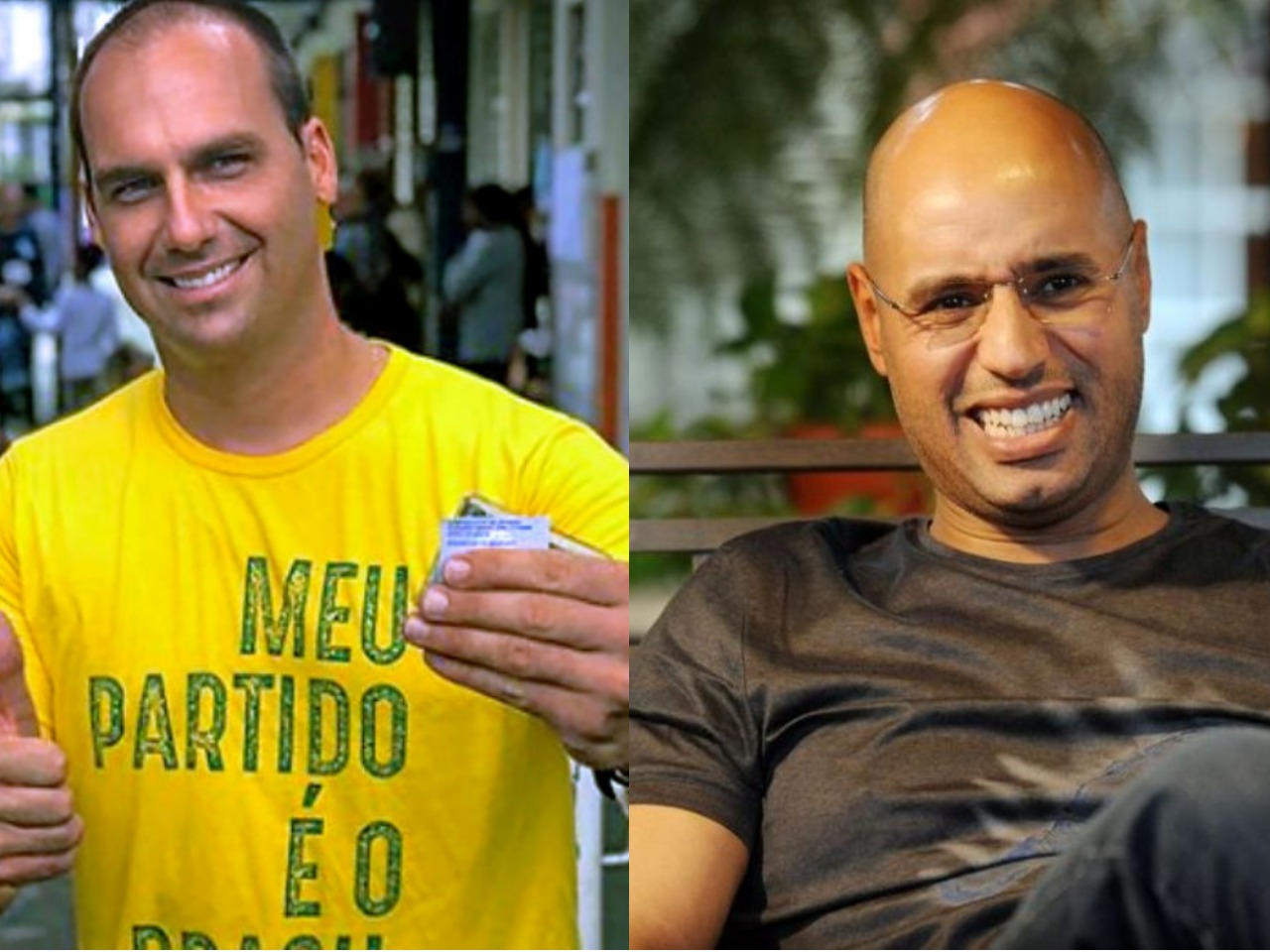 Eduardo guarda semelhança — inclusive física — com Saif al-Islam Kadafi, segundo filho do ditador líbio Muamar Kadafi, assassinado em 2011 após 42 anos no trono.