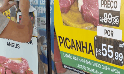 Após a decisão judicial que obrigou a retirada do cartaz “petista não é bem-vindo” de uma loja do frigorífico Goiás, na capital goiana, o bolsonarista Leandro Batista, CEO do estabelecimento, fez um novo anúncio. Em vídeo publicado nas redes sociais, na última terça-feira (30), o empresário mostrou que trocou a frase por: “Ladrão aqui não é bem-vindo. Quem apoia ladrão também não”.