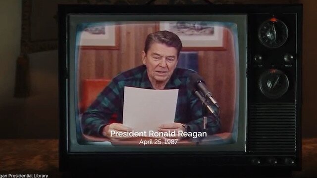 Um comercial produzido pelo governo da província de Ontário, exibindo trechos de um discurso de Ronald Reagan, 40º presidente dos Estados Unidos, causou uma crise diplomática entre os EUA e o Canadá. O vídeo foi visto como um ataque político por Donald Trump, que suspendeu as negociações comerciais com o Canadá, acusando o governo de Ontário de criar uma versão “falsa” e “manipulada” do discurso de Reagan.
