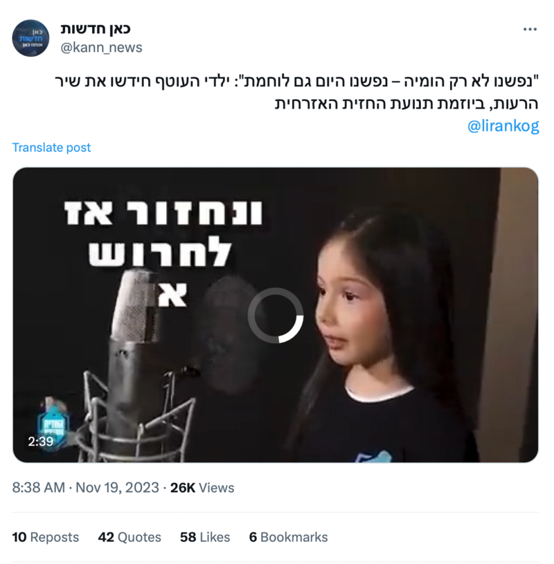 A emissora estatal de Israel, Kann, postou um videoclipe no X (antigo Twitter) no qual crianças israelenses celebram campanha de extermínio em massa dos palestinos em Gaza pelo Exército israelense.