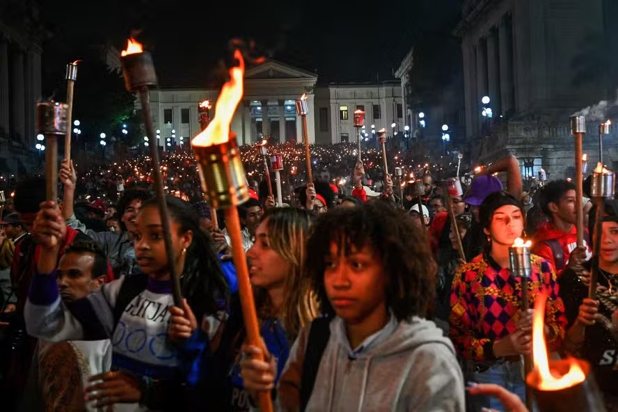 Cubanos marcharam com tochas pelas ruas de Havana na noite desta terça-feira (27) em protesto contra ameaças dos Estados Unidos à ilha. A mobilização reuniu milhares de pessoas, em sua maioria jovens, durante a tradicional “Marcha das tochas”, que neste ano assumiu caráter anti-imperialista em meio ao aumento das tensões entre Washington e Havana.