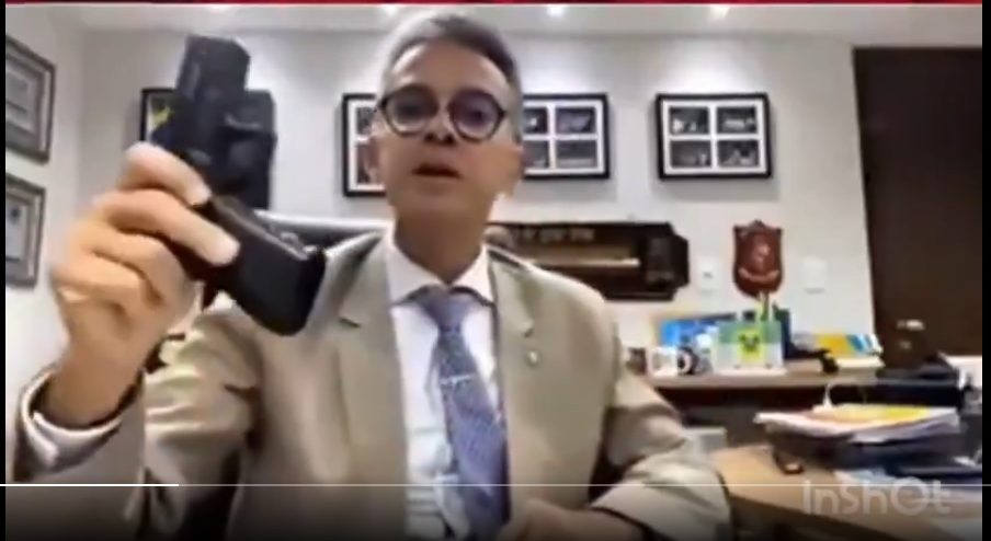 “Lula, pelo amor de Deus, homem, vá se tratar. E, se for na minha casa, está aqui para você [parlamentar pega a arma e mostra para a câmera] Pode vir que eu estou lhe esperando. Venha aqui. Bandido, cachaceiro, desordeiro, rapaz. Não é insuflando as pessoas que você vai conquistar voto, não. Não é assim, não. Não vai ganhar no grito, não”, disparou ele.