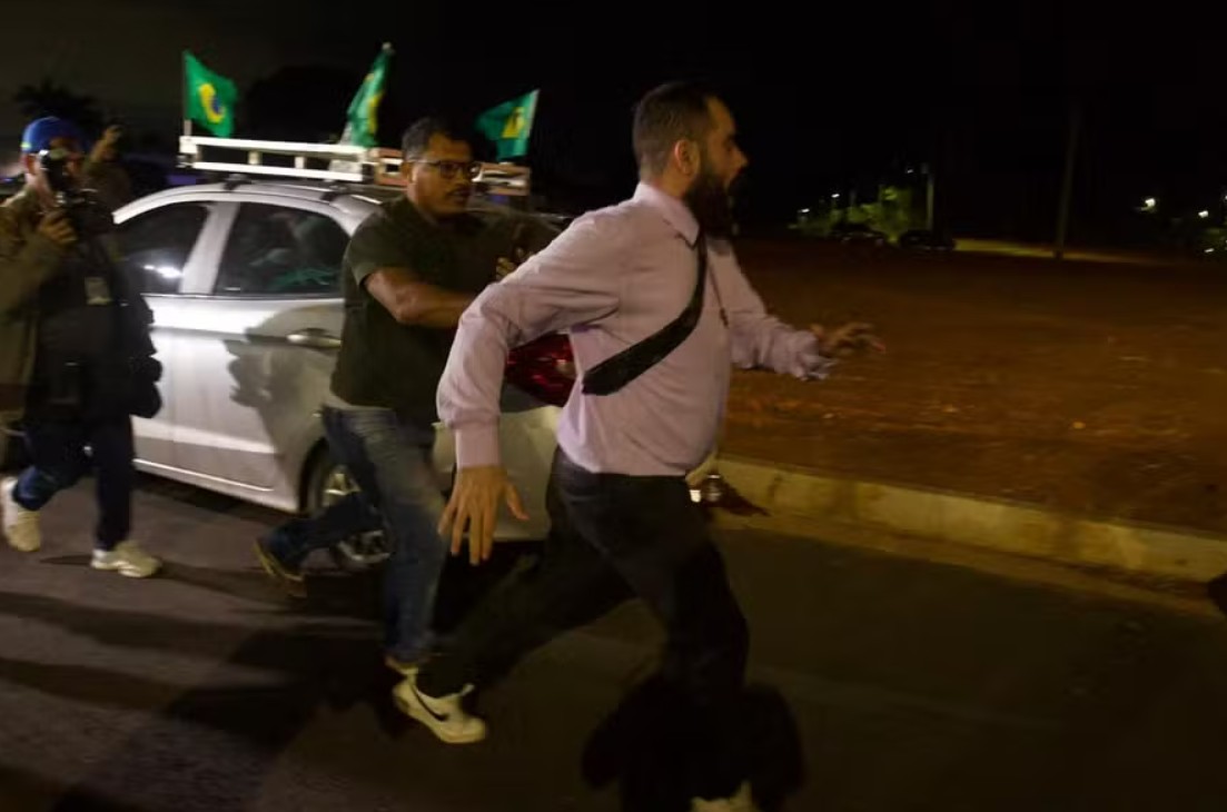 Assim que terminou de falar, Lopes saiu correndo em direção à rua, mas foi perseguido por apoiadores do ex-presidente. Testemunhas relataram que ele foi cercado, empurrado, recebeu socos e pontapés e teve a manga da camisa rasgada. A confusão se espalhou rapidamente entre os participantes da vigília, que até então seguiam em oração.