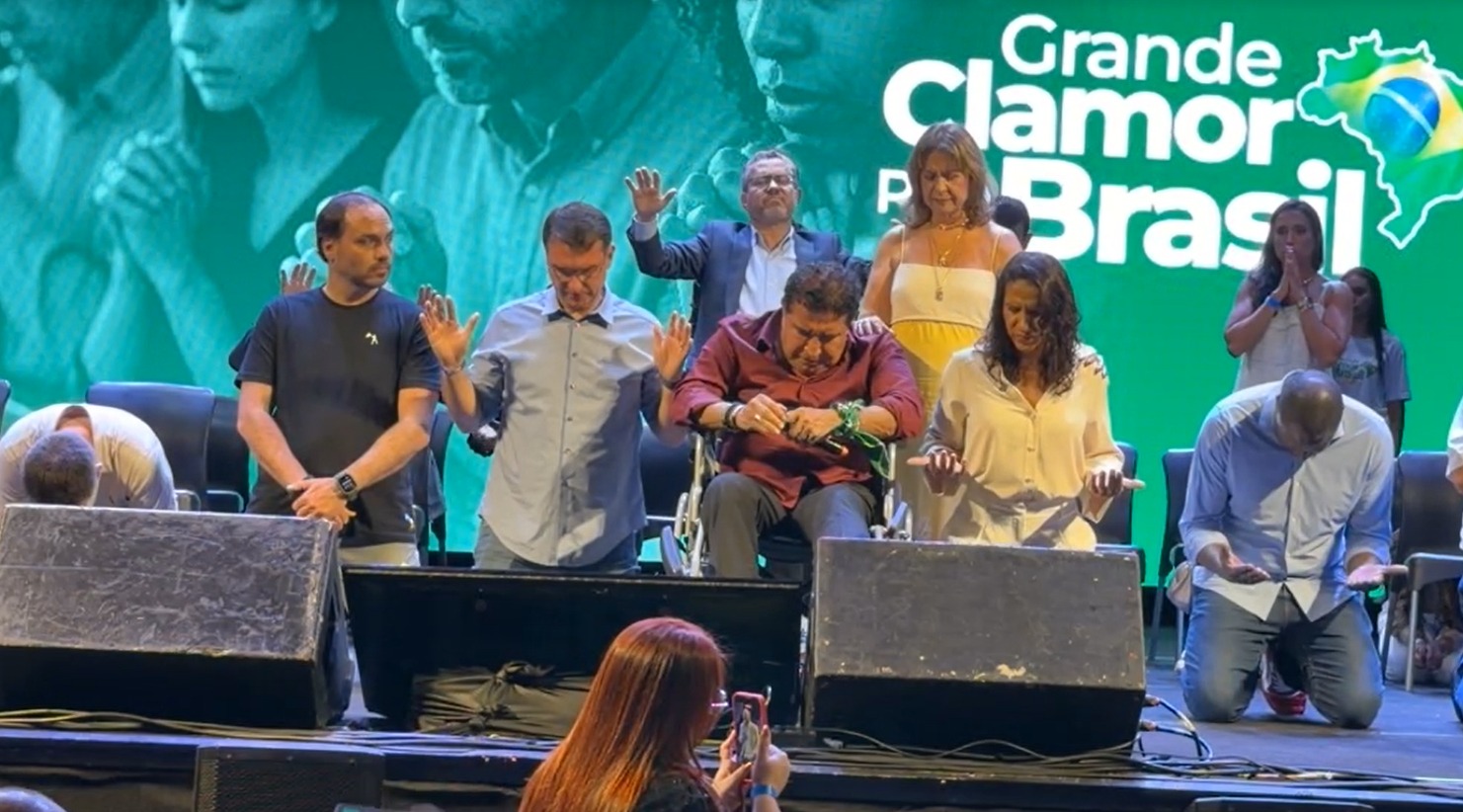 Na sequência, o senador convocou os presentes para uma oração coletiva, classificando o cenário político como um confronto religioso.