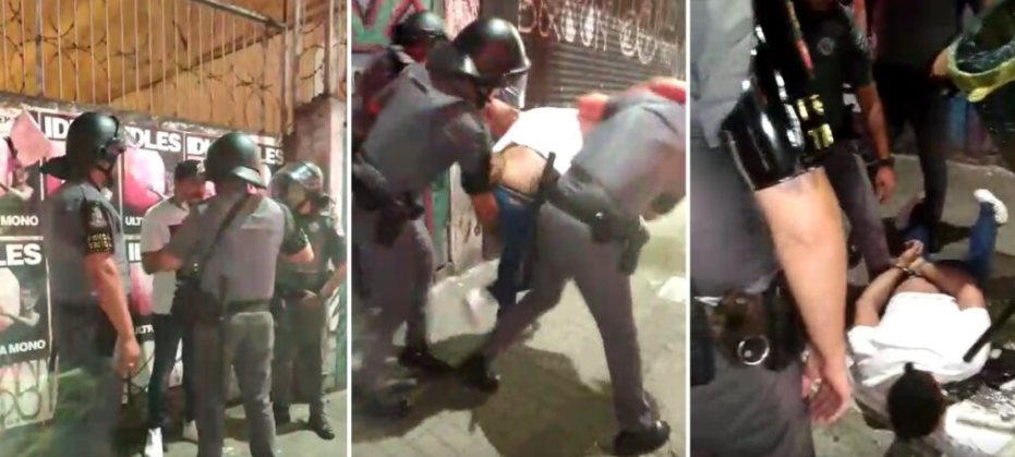 Um homem negro foi derrubado no chão, algemado e detido ilegalmente por policiais militares após questionar a abordagem na noite de sexta-feira (23/10), na Rua Augusta, no centro da capital paulista.