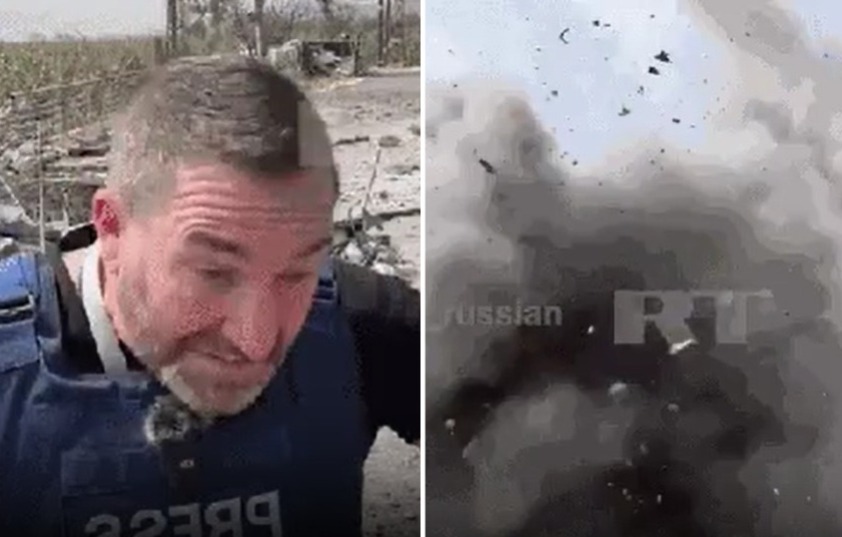Steve Sweeney trabalha para a estatal russa RT e o míssil caiu a poucos metros de onde ele estava. O momento foi gravado pelo cinegrafista que o acompanhava. Veja: