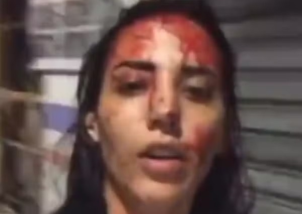 A mulher, identificada como Bia Correia, gravou um vídeo nas redes sociais, ensanguentada e segurando a faca usada no ataque. Ela afirmou que os episódios de violência ocorreram na madrugada de segunda, tanto na rua quanto dentro de sua residência.