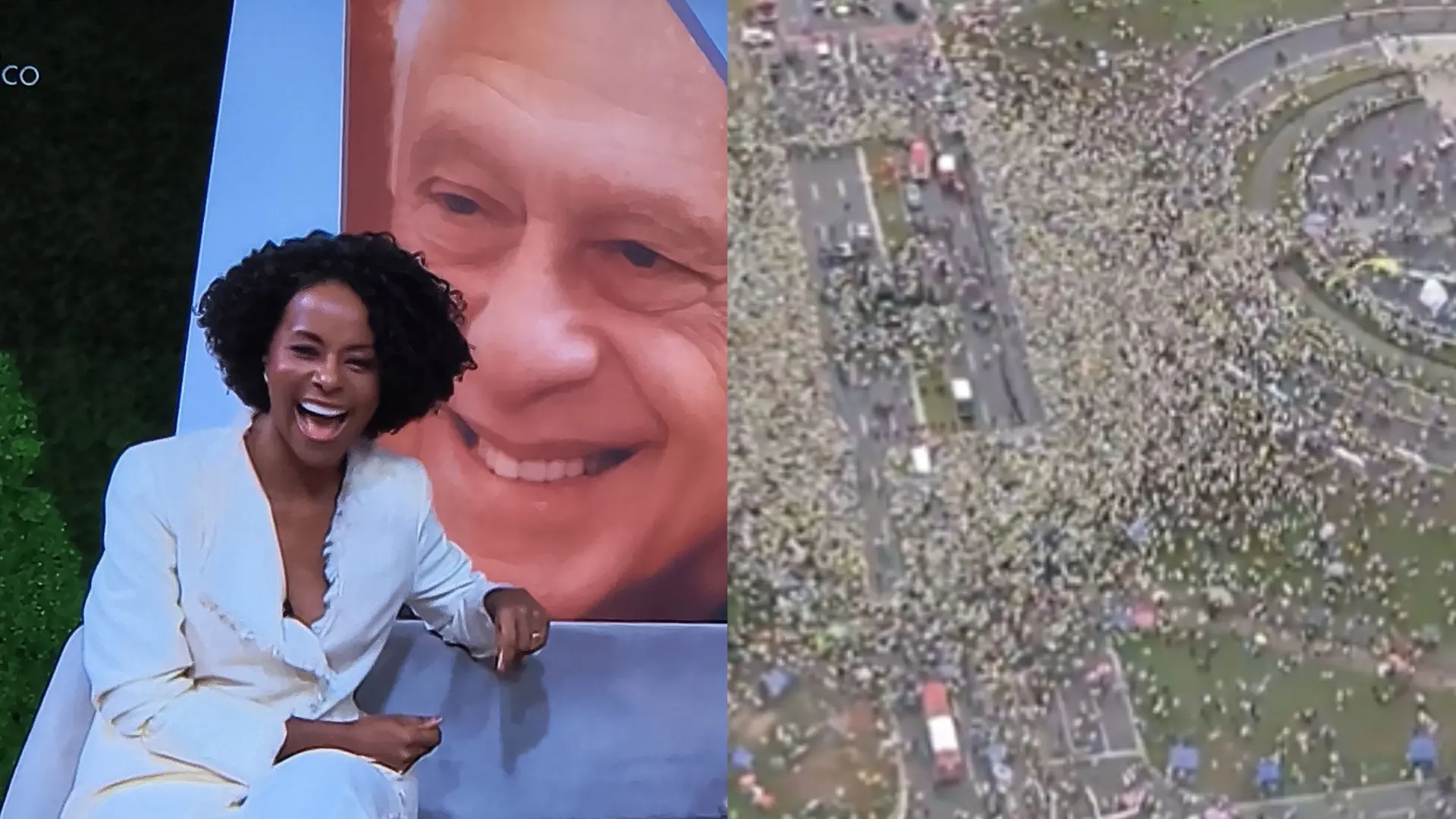 No programa “Fantástico”, da TV Globo, deste domingo (25), a apresentadora Maju Coutinho riu dos bolsonaristas que foram a Brasília apoiar o deputado federal Nikolas Ferreira (PL-MG) após caminhada. No bloco final da atração, foi exibido um VT sobre o ato e ela foi flagrada rindo ao voltar ao ar.