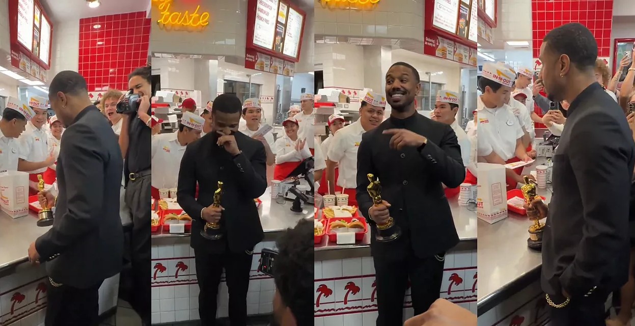 Michael B. Jordan was just spotted at In-N-Out Burger showing love to workers and fans while holding his Oscar after winning Best Actor in a Leading Role for “Sinners” at the 98th Academy Awards.pic.twitter.com/5nREg6zgf9