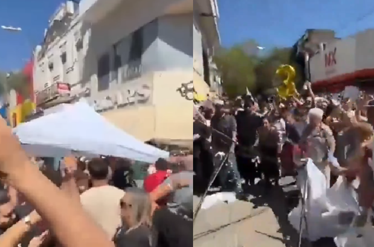 Por volta das 11h, militantes governistas e opositores se enfrentaram na peatonal San Martín, no centro de Santa Fe. O confronto incluiu empurrões, socos e o arremesso de ovos. Um gazebo do partido oficialista foi destruído. Os manifestantes exibiam cartazes com a frase “Milei, persona no grata”.