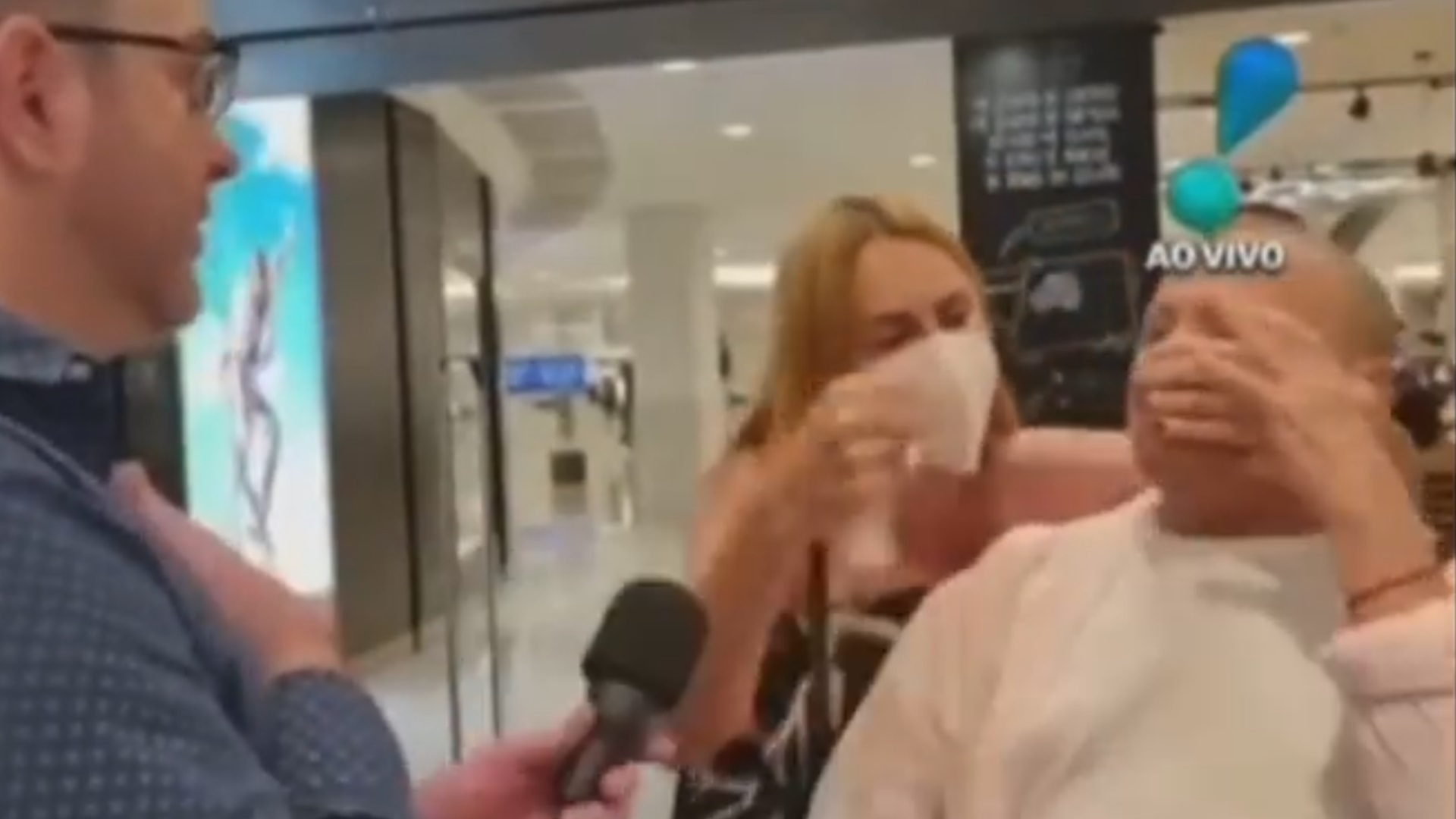 Stênio tentou impedir a mulher, mas não conseguiu continuar a entrevista e foi retirado à força do local. “Não, desculpa, por favor. Acabou!”, afirmou a esposa do famoso ao repórter da RedeTV!.