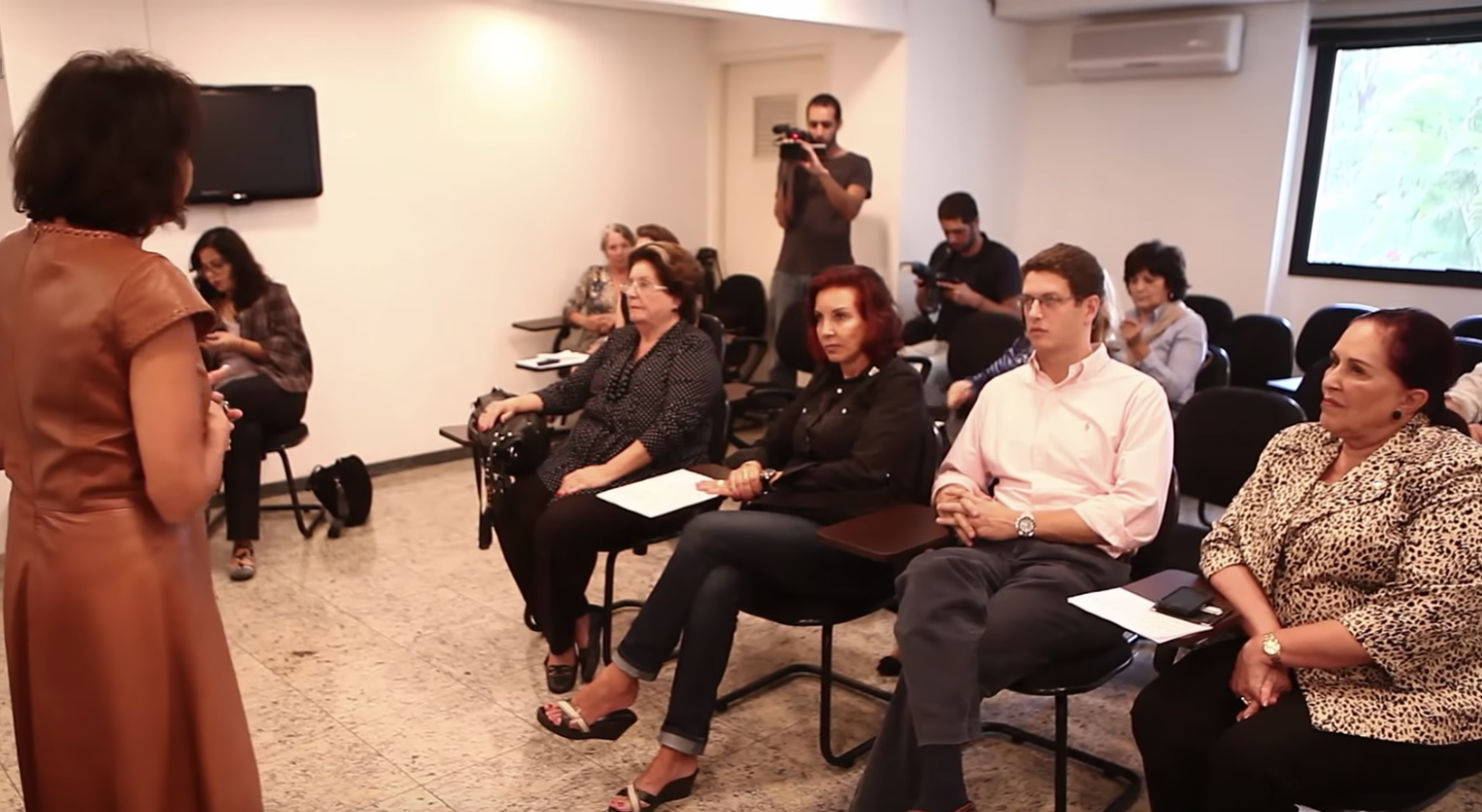 O jovem futuro ministro sentado no meio das mulheres, que se dividem como foco da atenção das câmeras em falas como a da advogada Raquel Alessandri, membro da União Democrática Nacional: “Temos que ficar em cima porque a população esquece. É só perguntar para as empregadas que a gente já sabe que [a população] tem outras preocupações”.