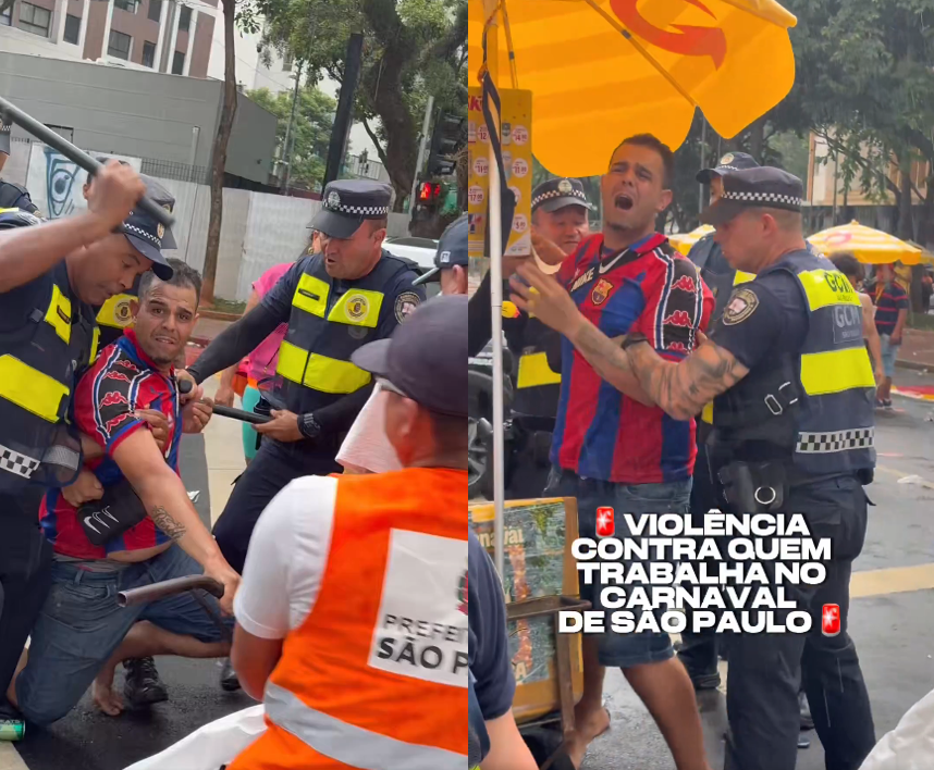 Um vídeo divulgado nesta segunda-feira (16) mostra um ambulante sendo agredido durante um bloco de Carnaval no centro de São Paulo. As imagens registram a atuação de agentes de segurança pública durante a ocorrência.