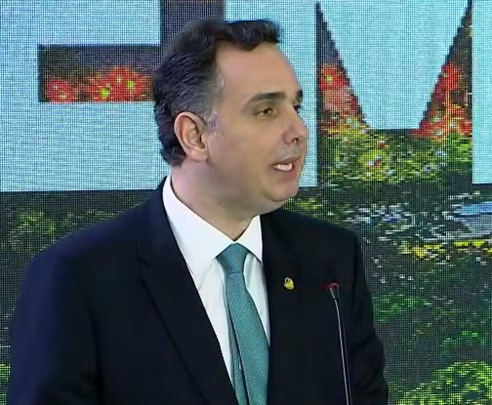 Presidente do Senado, Rodrigo Pacheco, discursa em evento que marca um ano dos atos golpistas de 8 de janeiro. Foto: Reprodução