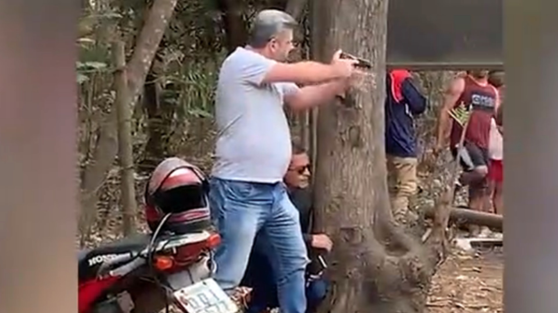 Nesta segunda-feira (29), na BR-116, na altura de Governador Valadares (MG), um homem apontou uma arma para indígenas que realizavam um protesto. Em resposta ao ato, um dos manifestantes apontou seu arco e flecha para o sujeito.