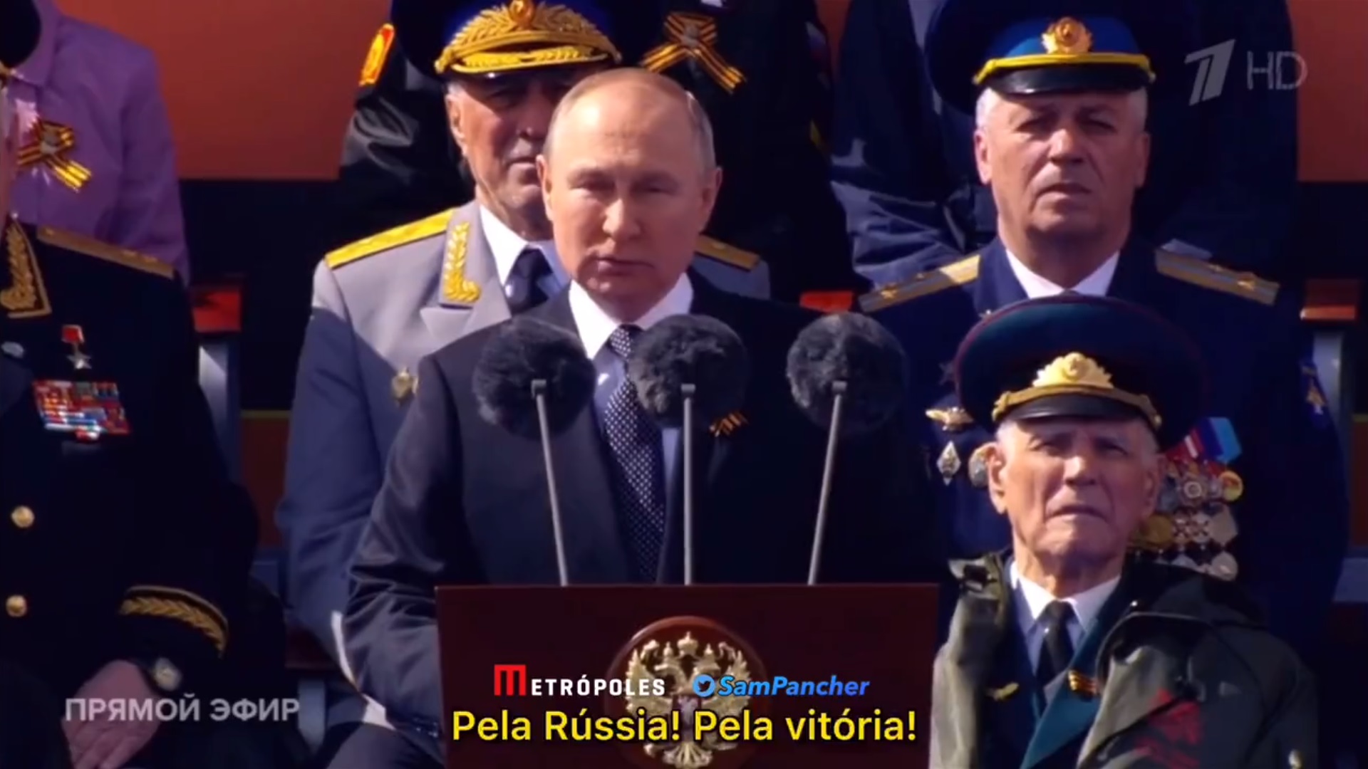 O líder fez o pronunciamento durante cerimônia em celebração ao Dia da Vitória, o 77º aniversário do triunfo da União Soviética sobre a Alemanha Nazista na Segunda Guerra Mundia. Putin não forneceu nenhuma avaliação do progresso na guerra, que entra agora em sua 11ª semana.