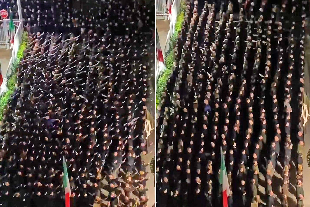 Em um vídeo que circula nas redes sociais, um grupo aparece estendendo o braço e gritando “presente” três vezes após o comando “a tutti i camerati caduti” (“a todos os camaradas mortos”).