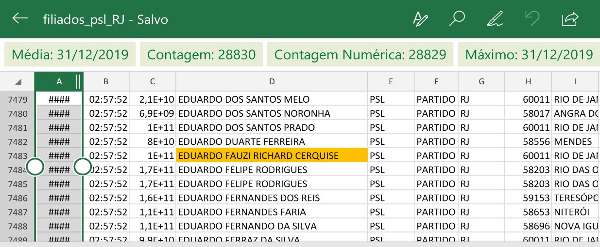 Ficha de filiação de Eduardo Fauzi ao PSL