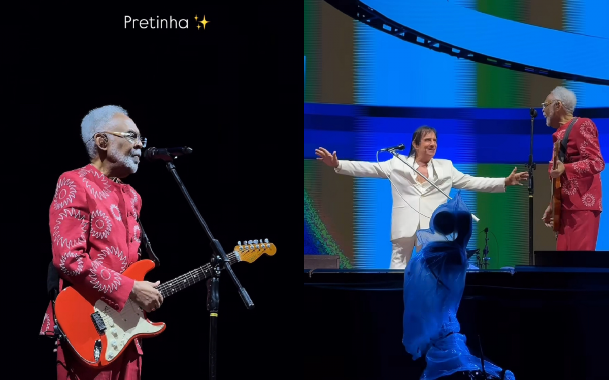 Diante de 50 mil pessoas, os dois cantaram juntos “A Paz”, repetindo o dueto que haviam feito no especial de fim de ano de Roberto Carlos, em 2024, e depois interpretaram “Além do Horizonte”, um clássico do repertório de Roberto. “Você veio mesmo, hein?”, disse Gil, sorrindo. “Não podia deixar de vir”, respondeu o cantor, arrancando aplausos do público.