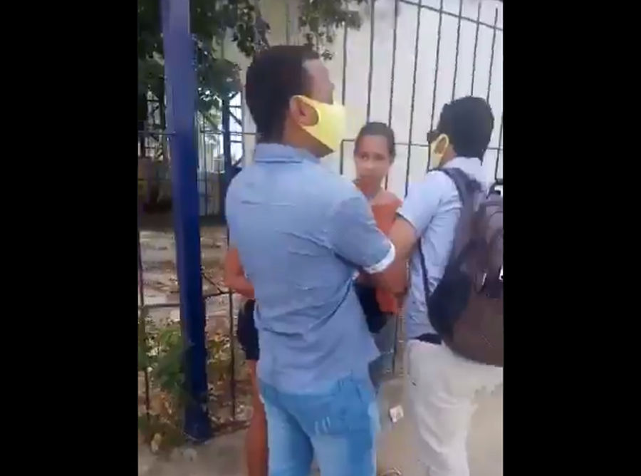 As imagens mostram apoiadores de João Campos postados perto da seções eleitorais.