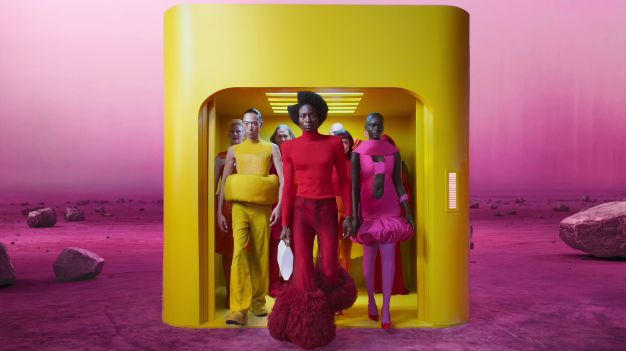 Lançado em várias plataformas de mídia social, o clipe de 30 segundos apresenta modelos de diferentes idades, gêneros e raças acompanhados por frases como “viva com vivacidade”, “delete o comum” e “não copie nada”, ao som de uma trilha sonora de techno minimalista. É uma sopa woke.