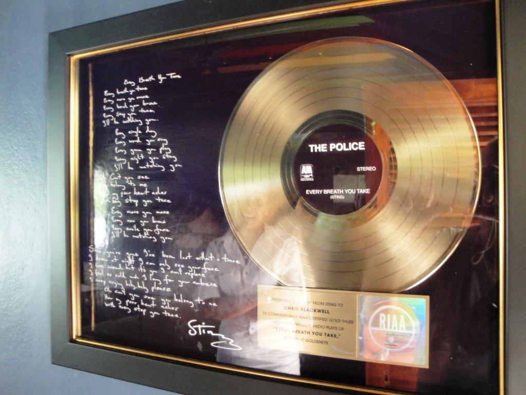 Na parede da sala existe um quadro com o disco que ouro que a banda Police ganhou pelo álbum Synchronicity. Ao lado do disco está a letra de Every Breath You Take, escrita pelo próprio Sting com uma caneta de tinta dourada. A canção clássica sobre espionagem pessoal (“Every step you take, every move you make, I’ll be watching you…”) foi composta naquela mesma sala.